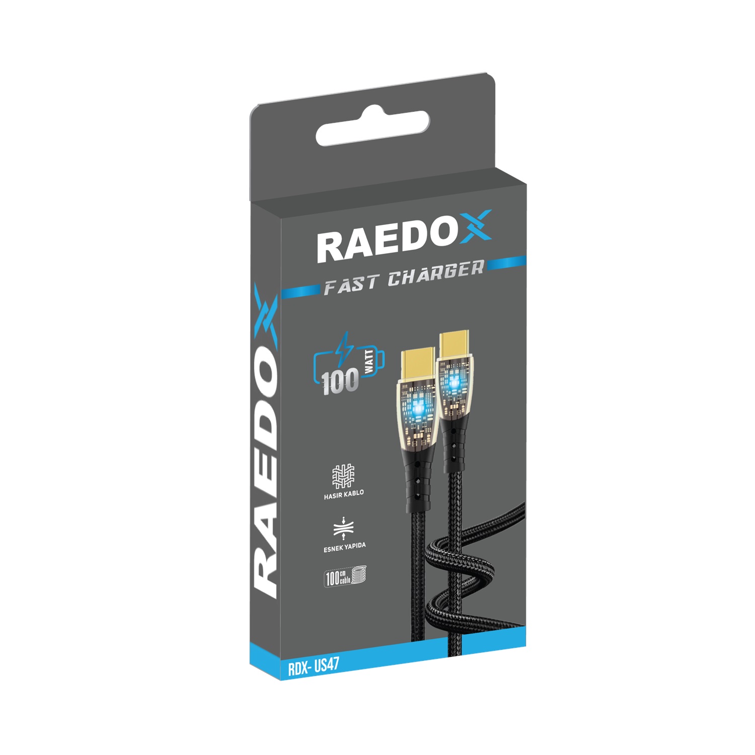 Raedox 100Watt Ledli Type-C Type-C Hasır Kablo
